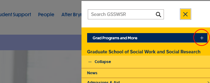 If you want to visit any of the Bryn Mawr sites, like the Grad Schools or the Inside site, you can expand the "hamburger" menu in the upper right of the page