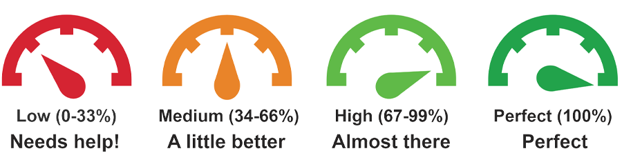 Accessibility scores range from 0 to 100 percent. A low score indicates severe or multiple significant accessibility issues. A high score signifies minor or no accessibility issues.